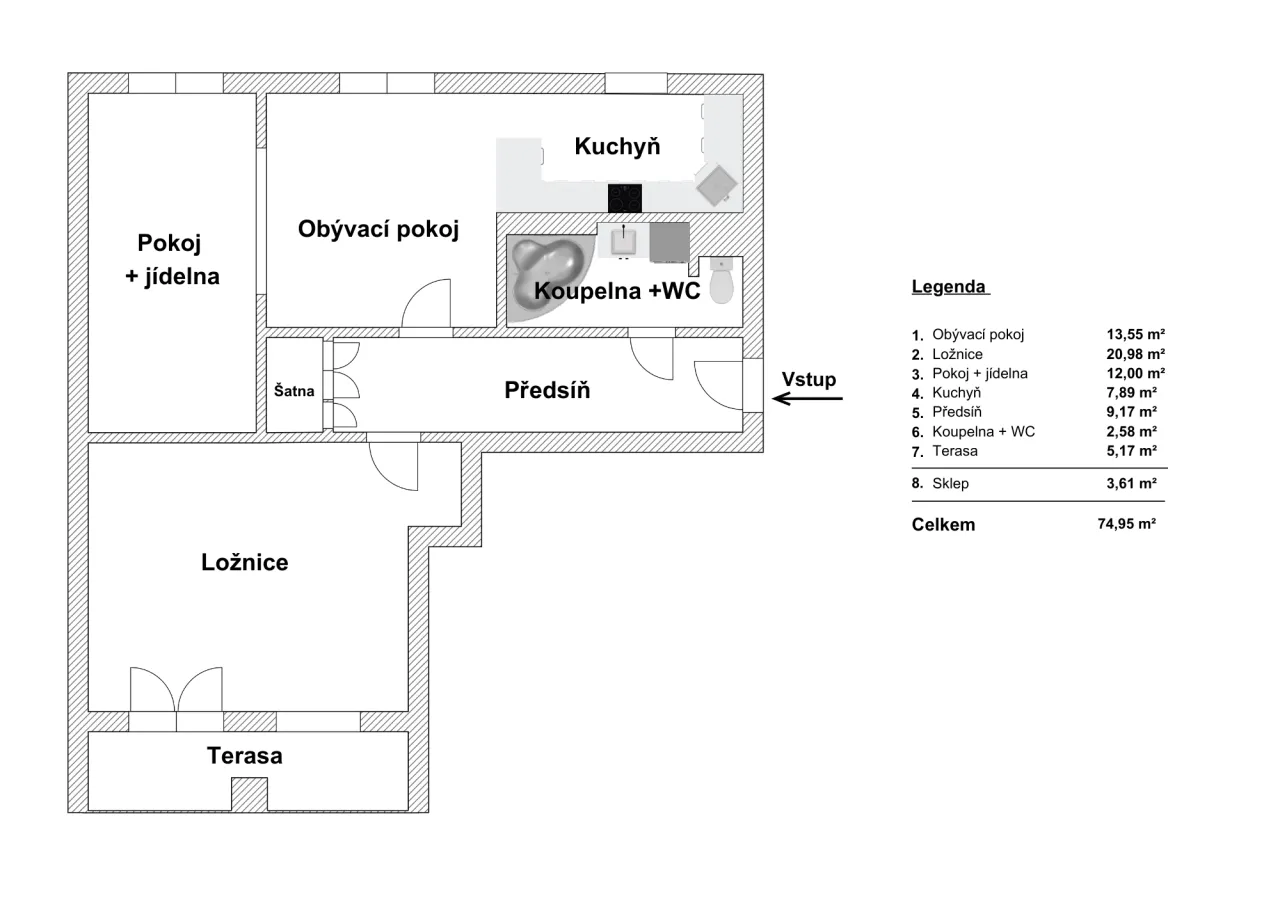 Na přání zákazníka můžeme přidat legendu, kóty nebo směrovou růžici, aby byl výsledný půdorys co nejpřesnější a nejpřehlednější. Tyto prvky pomáhají při orientaci v prostoru a poskytují dodatečné informace potřebné k lepší vizualizaci.